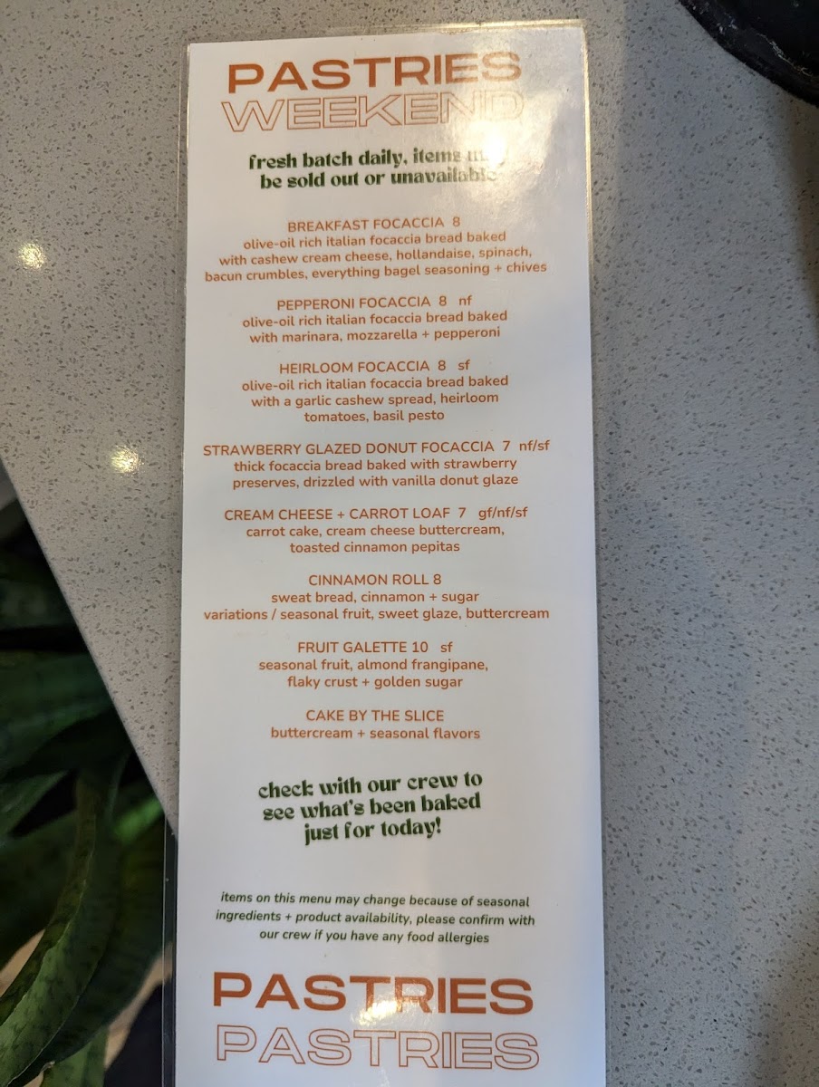 This menu is well-suited for breakfast, coffee breaks, or light snacks throughout the day. Visitors typically engage with the menu for quick orders or casual consumption in a café setting.